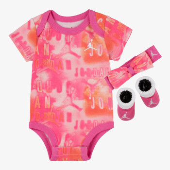 Detská súprava Nike JORDAN ESSENTIALS pre bábätká a malá dievčatká obsahuje body so zodpovedajúcou čelenkou a ponožky, ktoré sú jemné a šetrné k pokožke.